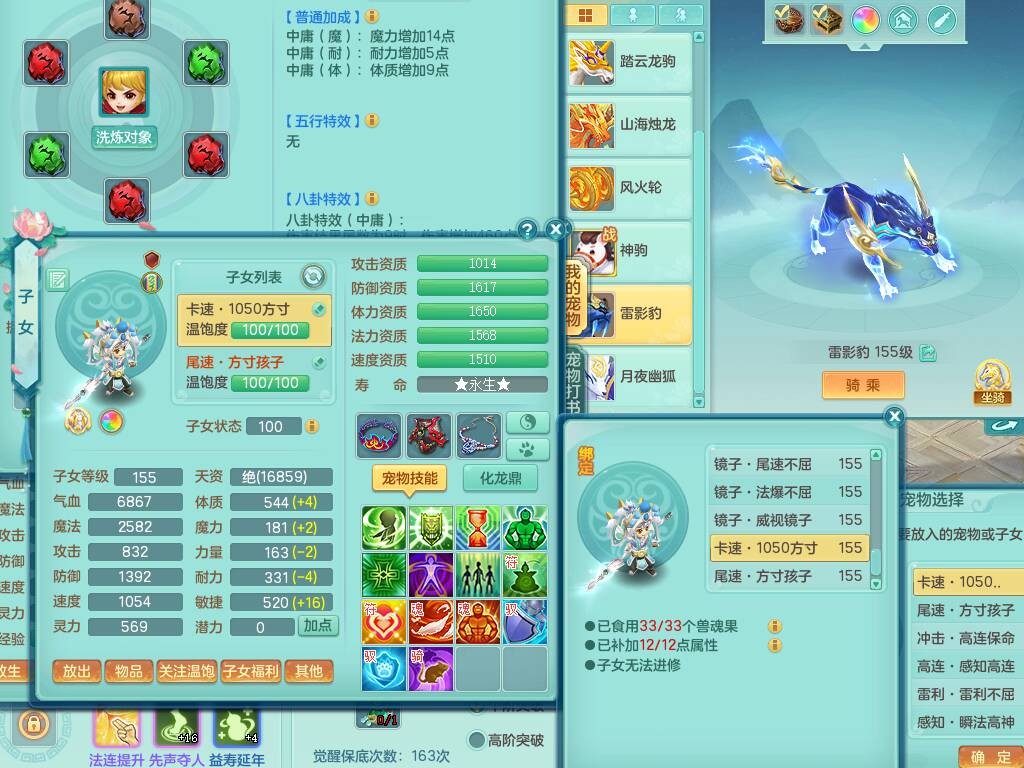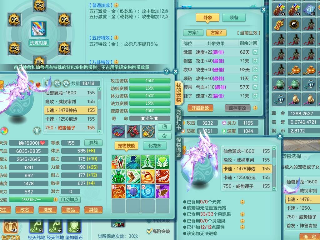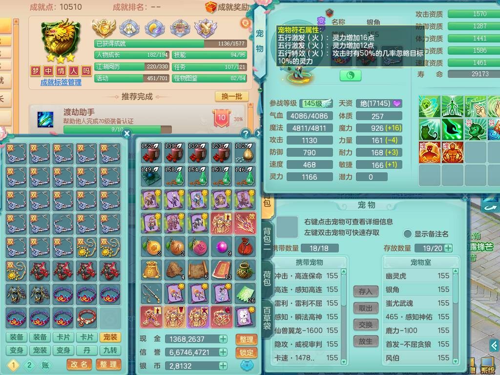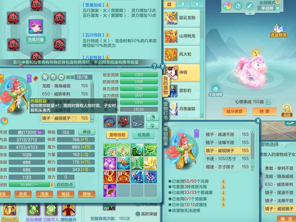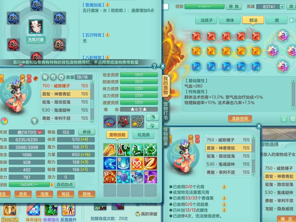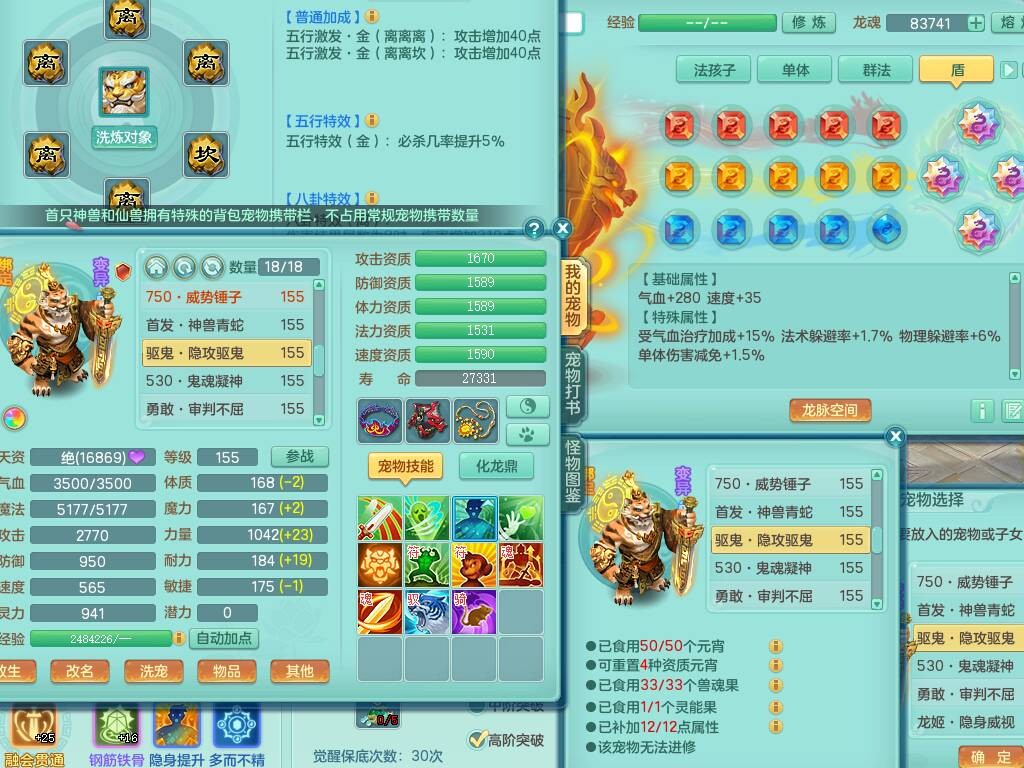fc9098 【潜龙在渊】风驰电掣159男无名谷,精灵歌+舞,8龙3内胆神,2破镜,【18只觉醒,已潜龙】,4位靓号ABAB,多个宠皮,1只六技能龙姬,5只六技能镜花灵,1特殊(雷光),6.0基础鼎+70攻、280血,919狂暴破血武器,破甲单加头,易成长崩山单加51鞋子,可玩法系,法爆单加51武器,法缭野兽衣服,五雷鞋,275易成长单加项链,266易成长单加54项链,15个格子,12个六字,4个五字,30+只满果子,宠排在榜,修炼在榜,永久称谓,6个坐骑,原始暴龙逍客++神驹心想事成+火焰之力武器皮肤,带172天月卡 2980邮箱