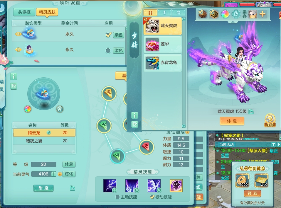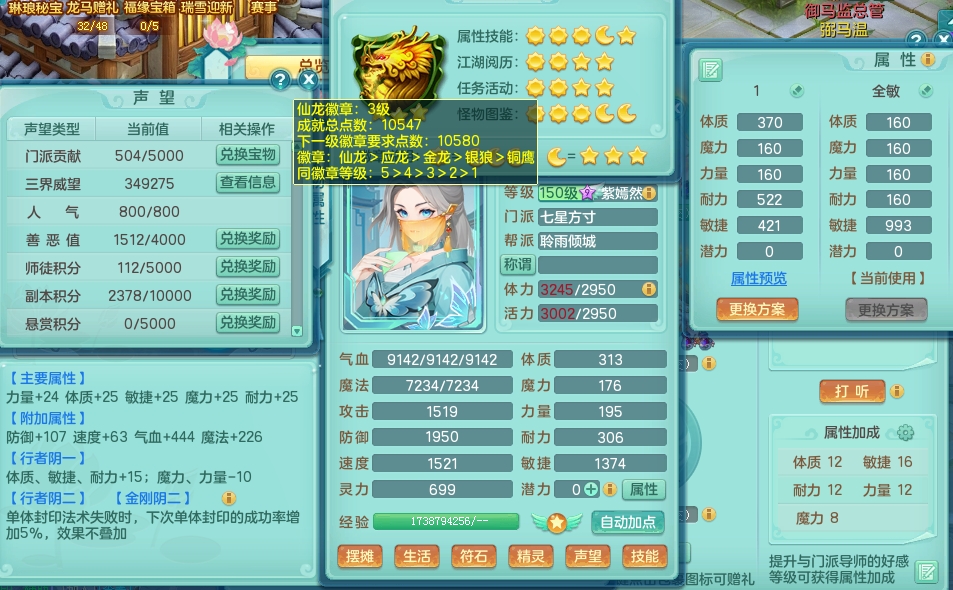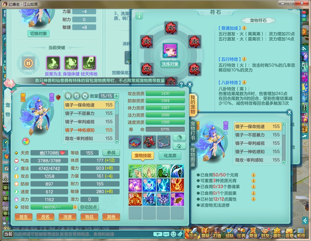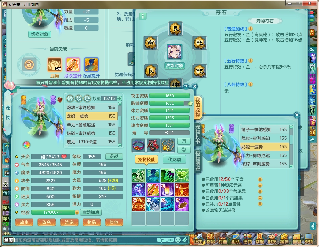 js9112 江山如画 159 女 方寸 5.5化龙鼎毕业 月卡62天 15宠物格子 1内神 3镜子 特殊(舍身、勇猛、虎虎) 9觉醒 6个真6字 14+满果子 双飞坐骑 精灵舞 满星穹 QQ邮箱